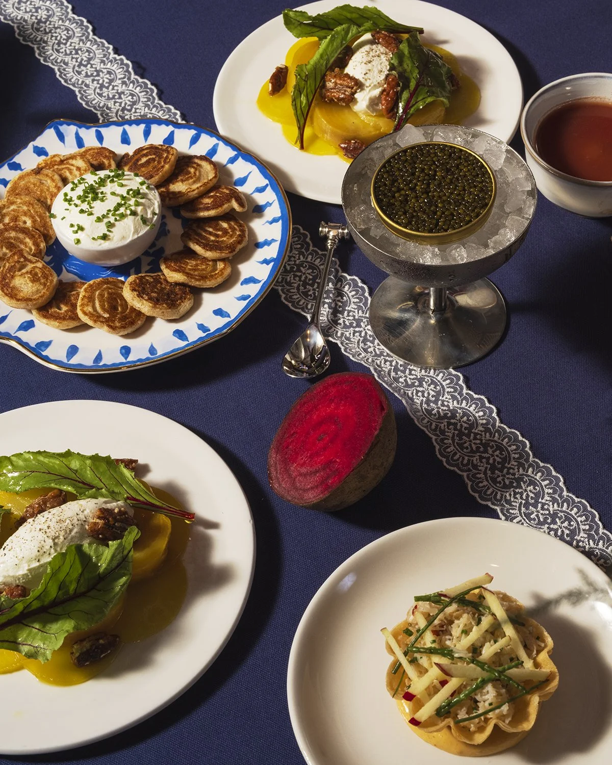 Sweeping city views, the warm glow of candlelight, a twist on traditional festive programming, and a glass of Ruinart champagne on us. Our chefs have crafted a festive menu designed for lingering, feasting, and maybe just one more toast.